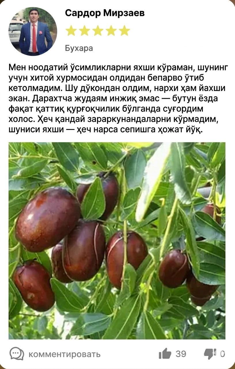 Зизифус кўчатлари сони чекланган. Буюртма беришга улгуриб қолинг!